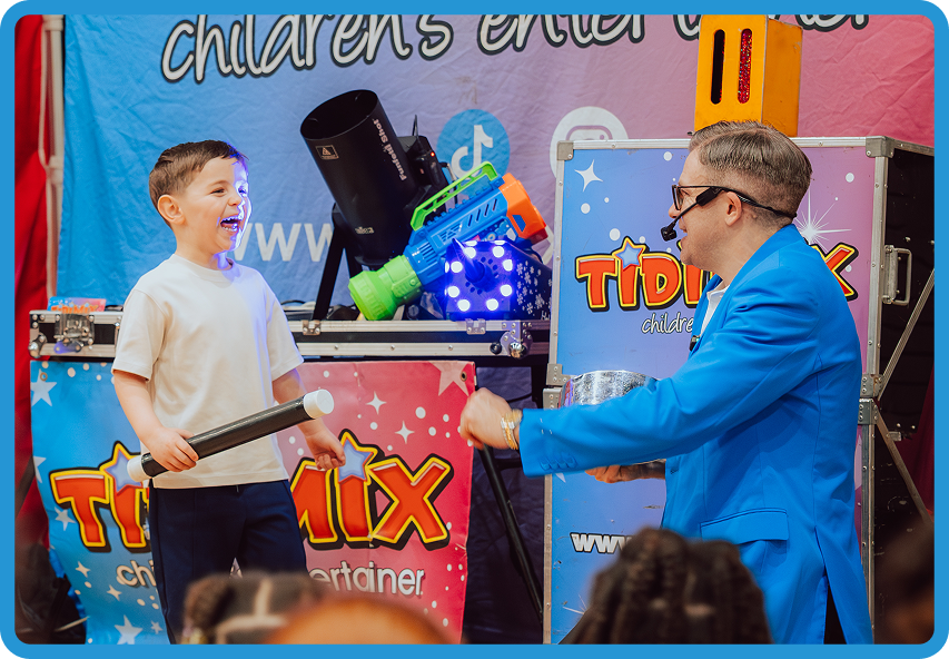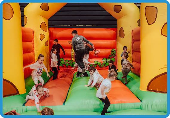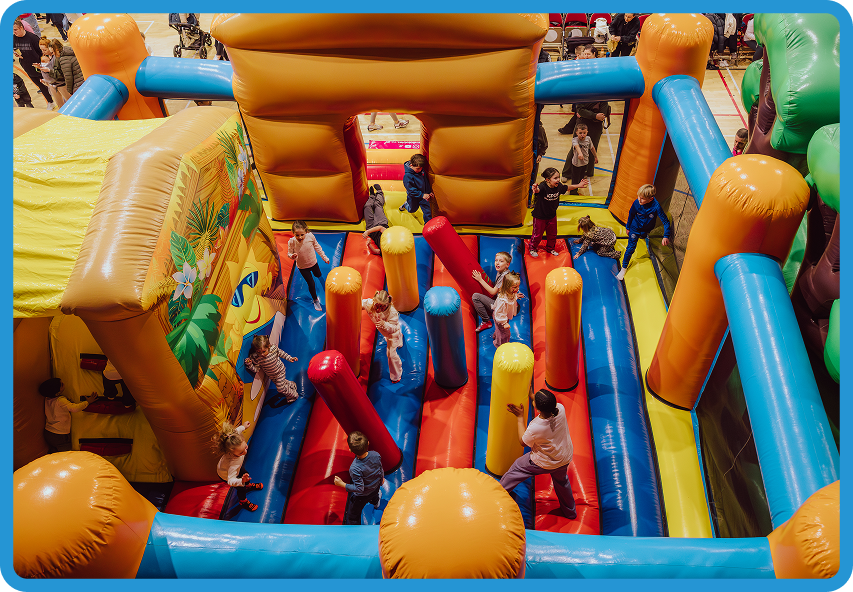 Gameshows, puppets, and interactive fun run alongside the inflatables. 3x UK Kids Entertainer of the Year keeps them laughing the entire session.