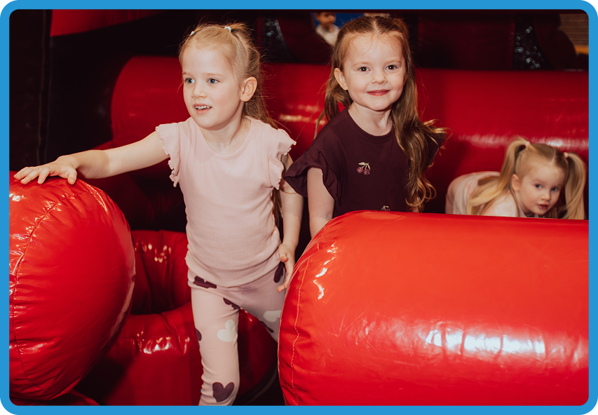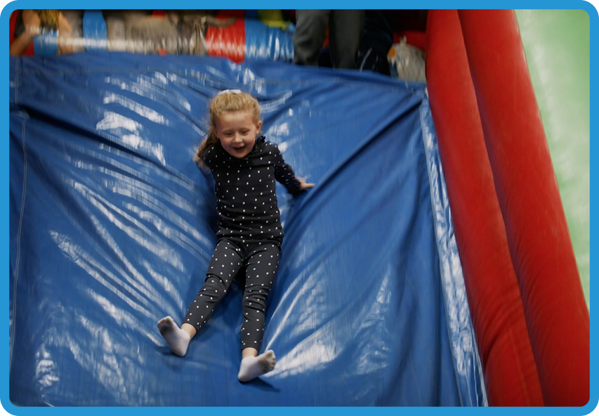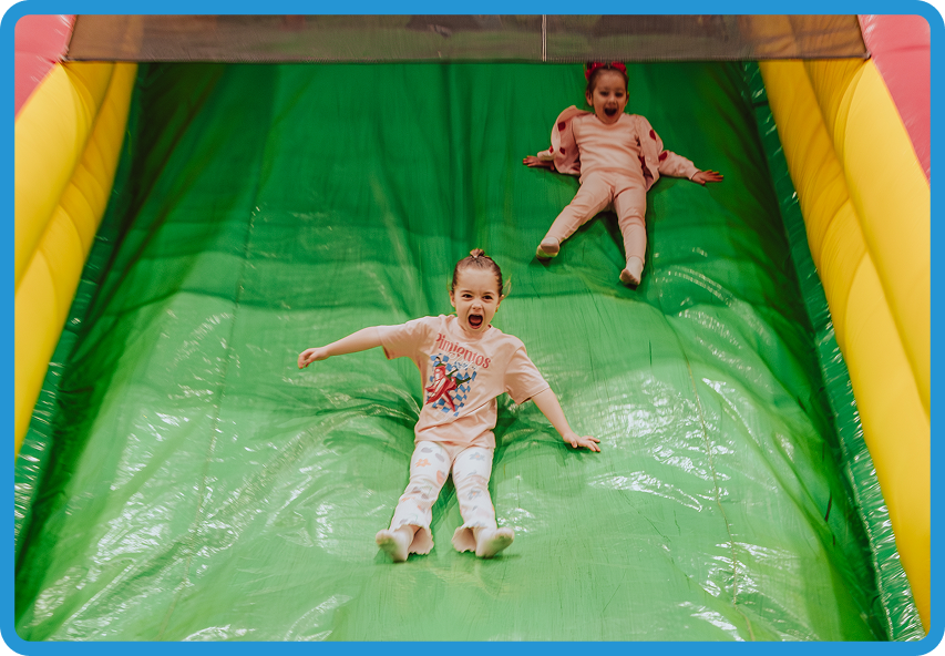 Full-on bouncing, sliding, and obstacle courses means they've burned energy, not just stared at screens.